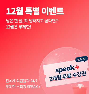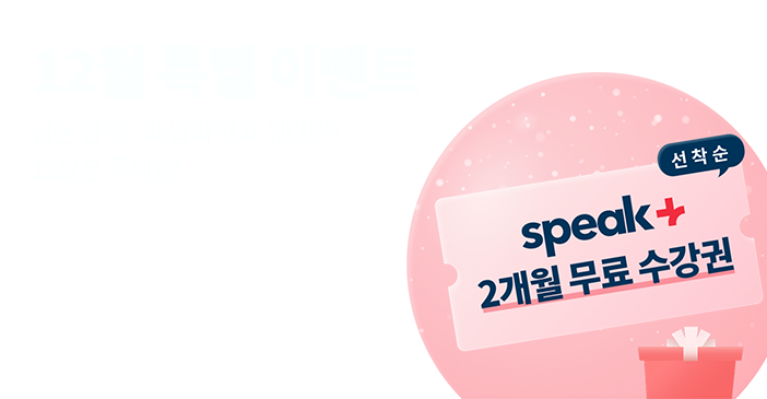 Speak+(스픽 플러스)는 월스트리트 잉글리시 학습을 더욱 효과적으로 완성하는 부스트업 프로그램입니다. AI가 아닌 전 세계 회원들과 매일 실시간으로 소통하며 영어 자신감을 키워보세요.